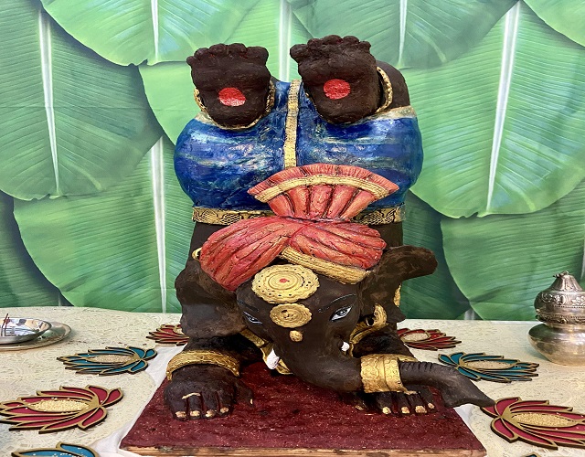 "बप्पा" की यह मूर्ति वृश्चिकासन मुद्रा में है। डिजाइनर राठौड़ ने कहा- ‘‘इस मुद्रा का उल्लेख हमारे पुराणों में मिलता है। मैंने हाल ही में प्राकृतिक चिकित्सा में एक पाठ्यक्रम पूरा किया है, इसलिए मैंने इन दोनों विचारों को मिला दिया है और इस मुद्रा में मूर्ति बनाई है।'' उन्होंने कहा कि मूर्ति कोको पाउडर और नौ प्रकार के मोटे अनाज से बनाई गई है, क्योंकि इस वर्ष को अंतरराष्ट्रीय मोटा अनाज वर्ष के रूप में मनाया जा रहा है।