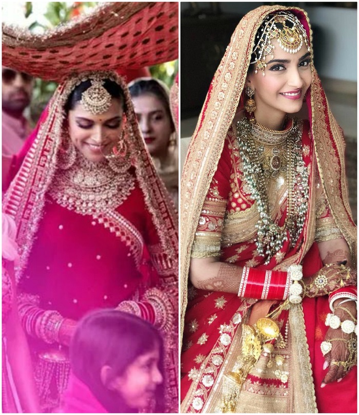 बात बॉलीवुड फैशनिस्ता सोनम कपूर की करें तो उन्होंने मई 2018 में आनंद आहूजा से शादी की। उनकी शादी का रेड एंड गोल्डन लहंगा मशहूर डिजाइनर अनुराधा वकील ने डिजाइन किया था। लहंगे की कीमत 70 से 90 लाख रुपए के बीच थी। वहीं लहंगे के साथ उन्होंने अपनी मां सुनीता कपूर की ट्रेडीशनल ज्वेलरी कैरी की थी।