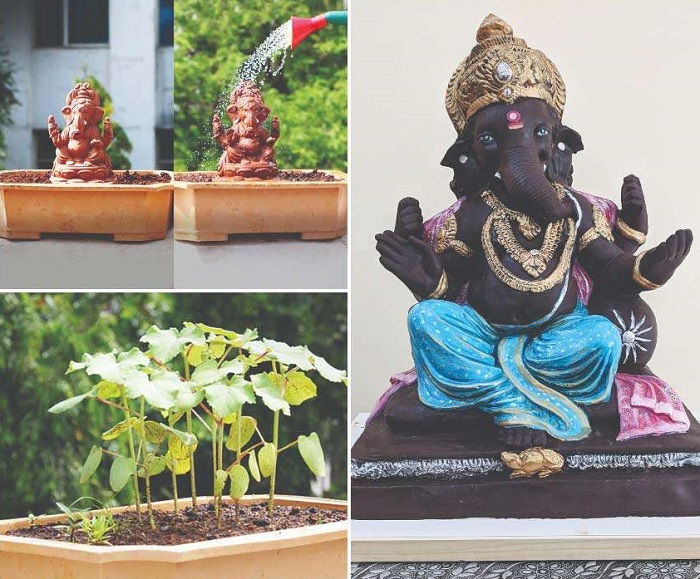 सोशल मीडिया पर भी यूजर्स लोगों से इको-फ्रेडली गणेश चतुर्थी मनाने की रिक्वेस्ट कर रहे हैं। इसी बात को ध्यान में रखते हुए मंगलुरु के नितिन ने गणेश जी की ऐसी प्रतिमा बनाई है, जो विसर्जन के बाद पेड़ बन जाएगा।