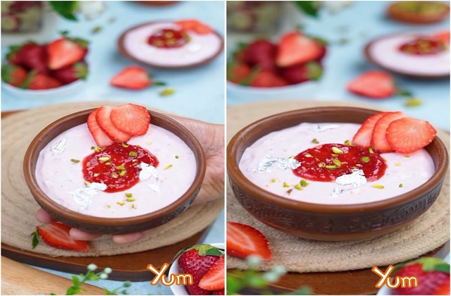 नारी डेस्क : अगर आप कुछ हल्का, फ्रेश और फ्रूट युक्त डेज़र्ट बनाना चाहते हैं, तो बेक्ड स्ट्रॉबेरी योगर्ट आपके लिए परफेक्ट है। यह डिश हंग दही और फ्रेश क्रीम के साथ स्ट्रॉबेरी का मीठा स्वाद जोड़कर बनाई जाती है, जिससे यह न सिर्फ स्वाद में लाजवाब होती है, बल्कि हेल्दी भी होती है। इसे बनाना आसान है और यह पार्टी, खास अवसर या सिर्फ घर पर मिठास का आनंद लेने के लिए बेहतरीन विकल्प है। इसे ठंडा परोसने से यह और भी स्वादिष्ट और क्रिमी हो जाती है।