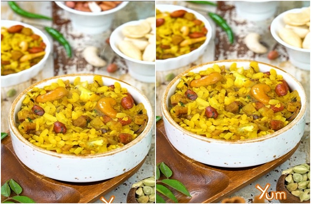 नारी डेस्क : बंगाली स्टाइल पोहा एक आसान और स्वादिष्ट भारतीय नाश्ते की डिश है। यह सिर्फ स्वाद में ही नहीं, बल्कि पौष्टिकता में भी भरपूर है। इसमें हल्का भुना हुआ पोहा, ताजगी से भरी सब्ज़ियां और खस्ता मूंगफली-काजू मिलाकर इसे बच्चों और बड़ों दोनों के लिए परफेक्ट बनाया गया है। इस पोहा की खासियत यह है कि यह तीव्र स्वाद के साथ हल्का और सुपाच्य होता है, और इसे बनाना भी बहुत आसान है। इसे नाश्ते में या शाम के हल्के स्नैक्स के रूप में परोसा जा सकता है।