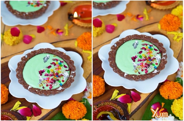 नारी डेस्क : चॉकलेट और पान का अनोखा संगम पेश करता है यह Chocolate Paan Tart। यह मिठाई न सिर्फ स्वाद में लाजवाब है, बल्कि दिखने में भी बहुत आकर्षक है। खजूर, नारियल और नट्स से बनी कुरकुरी बेस, पान और सफेद चॉकलेट की मलाईदार फिलिंग के साथ मिलकर इसे एक खास डेजर्ट बनाती है। इसे आप खास अवसरों, त्योहारों या मेहमानों के लिए तैयार कर सकते हैं।