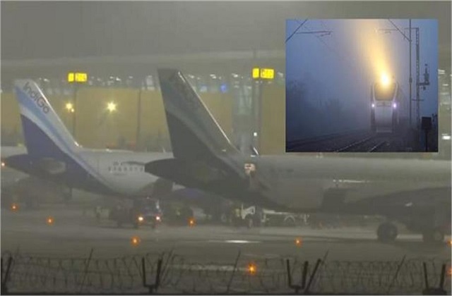 घने कोहरे का सबसे ज्यादा असर हवाई और रेल सेवाओं पर देखने को मिला।