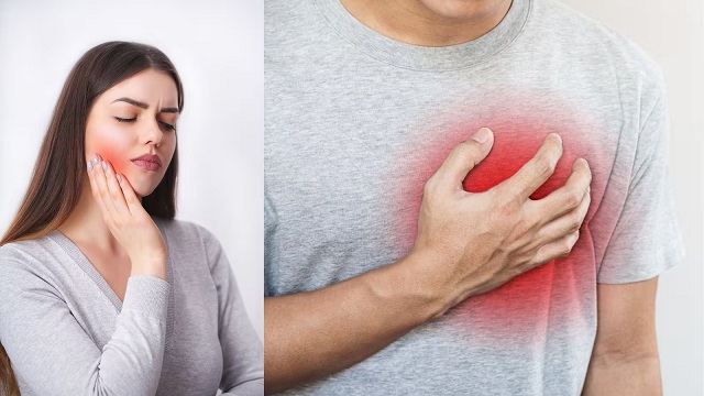दिल के पास मौजूद नसों और मांसपेशियों की वजह से दर्द केवल सीने तक सीमित नहीं रहता। कभी-कभी बाएं हाथ, पीठ, गर्दन, जबड़े या पेट में भी दर्द महसूस हो सकता है।