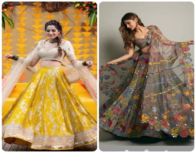 ग्लिटरी नेट, शिमर जॉर्जेट या सैटिन लहंगा लड़कियों पर बेहद जचता है। गोल्डन, सिल्वर, रोज़ गोल्ड या कॉपर ज्यादा पसंद किए जाते हैं। अगर आप दीवाली पार्टी नाइट में जा रही हैं तो ऑफ-शोल्डर या वन-स्लीव स्टाइल चोली की शानदार लगेगी।
