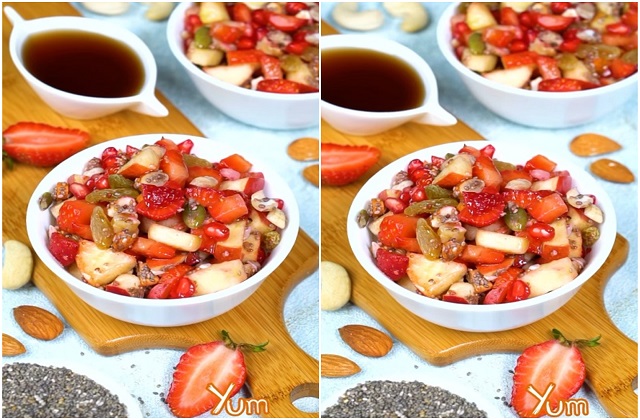 4. ताज़ा और हेल्दी फ्रूट्स एंड नट्स बाउल परोसें।