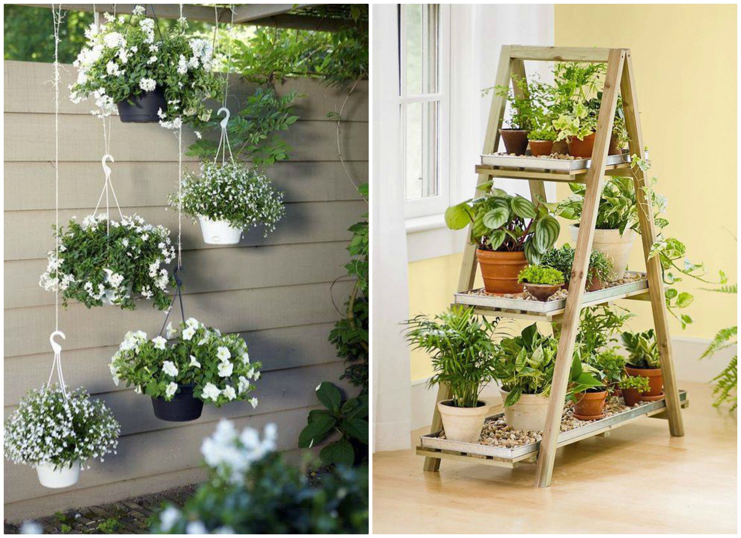 1. दीवार पर इस तरह से स्टैंड लगाकर भी गमलों को उन पर लगा सकते हैं। इससे एक तो दीवार दिखने में सुंदर लगेगी। दूसरा आपकी इनडोर गार्डनिंग भी हो जाएगी।