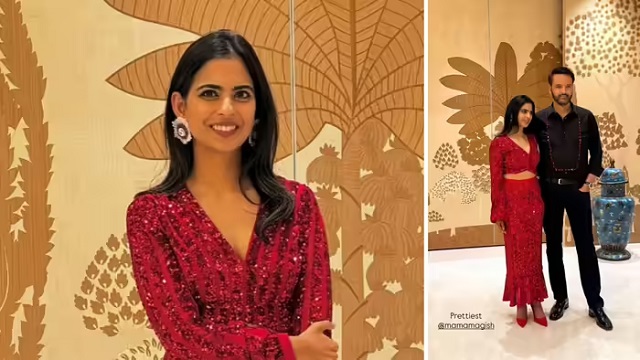 ईशा और आनंद का यह जोड़ी फैशन के मामले में हमेशा सुर्खियों में रहता है। इस बार भी उन्होंने अपने लुक्स से सबको इंप्रेस कर दिया। ईशा का लाल चमकदार आउटफिट और आनंद की जेमस्टोन वाली शर्ट ने मिलकर कपल फैशन गोल्स दिए।