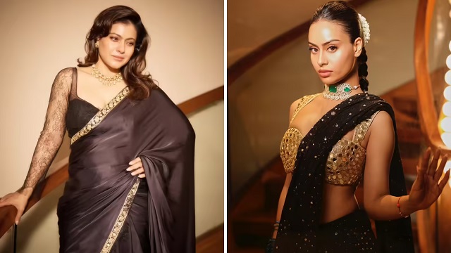 काजोल ने नहीं चलने दिया बेटी का 'काला जादू',काली साड़ी पहनकर ढेर कर दिया नीसा का देसी ग्लैमर