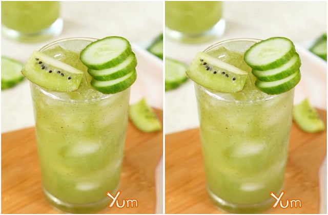 3. ऊपर से खीरे और कीवी के स्लाइस से गार्निश करें।