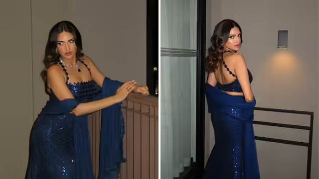 इस लुक की असली हाइलाइट उनकी चोली रही। स्ट्रैपलेस डिजाइन के साथ कर्व कट नेकलाइन और हॉल्टर नेक पैटर्न ने इसे और भी ग्लैमरस बना दिया। बैक साइड पर डीप नेक और कटआउट स्ट्रैप्स ने इसमें बोल्ड टच जोड़ा। चोली पर बने स्क्वायर सेक्विन पैटर्न ने पूरे लुक को शिमरी और यूनिफॉर्म फिनिश दिया।