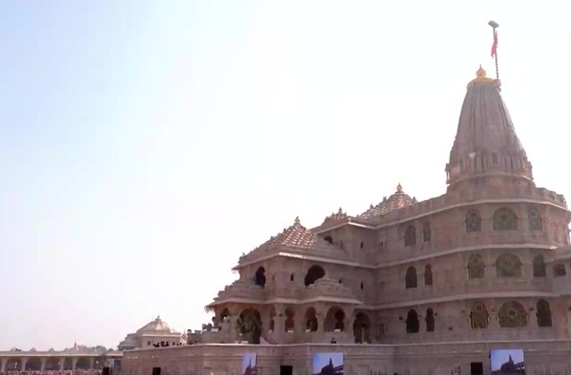 राम-सीता के विवाह पंचमी के शुभ मुहूर्त पर राम मंदिर के शिखर पर फहराया धर्म ध्वज