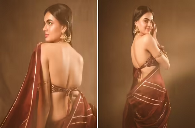 बैकलेस ब्लाउज बना लुक का हाइलाइट