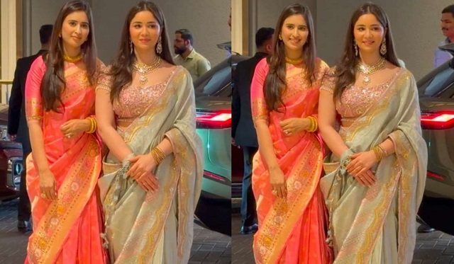 इस मौके पर सारा तेंदुलकर भी बेहद खूबसूरत लग रही थीं। उन्होंने पेस्टल ग्रीन सिल्क साड़ी पहनी थी, जिसे सुनहरी जरी के कर्व डिजाइन से सजाया गया था। साड़ी पर गोल्डन और पिंक टोन का डिजाइन भी देखने को मिला। उन्होंने इसे ग्रेसफुल अंदाज में ओपन पल्लू के साथ ड्रेप किया था, जिससे उनका लुक और भी एलिगेंट नजर आया।