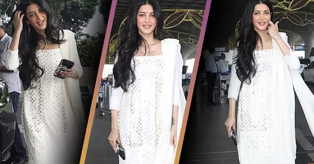 एयरपोर्ट पर ट्रैडिशनल लुक में स्पॉट हुई श्रुति हासन, व्हाइट सूट में नजर आई बेहद खूबसूरत