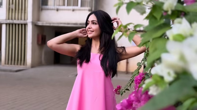 शुभांगी की पिंक ड्रेस सिंपल और क्लासी थी। इसमें कोई जटिल एम्ब्रॉयडरी या सेक्विन नहीं था। ड्रेस का नेकलाइन स्ट्रेट और बॉडी फिटेड था, जबकि स्कर्ट का हिस्सा फ्लेयर और प्लीट्स के साथ खूबसूरत फ्लोइ सिल्हूट में था। फ्लोर लेंथ हेम और बॉल गाउन जैसा फील इसे प्रिंसेस वाइब्स दे रहा था।