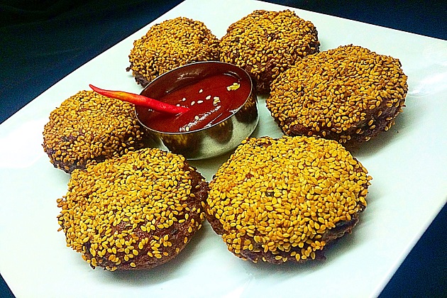 3. साथ ही इसके ऊपर तिल बुरक दें।