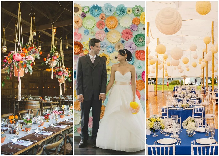 रिसेप्शन पार्टी को एलिगेंट लुक देने के लिए आप छत की डैकोरेशन के लिए बल्ब हैंगिंग फ्लावर या किसी और चीज का इस्तेमाल कर सकते हैं।