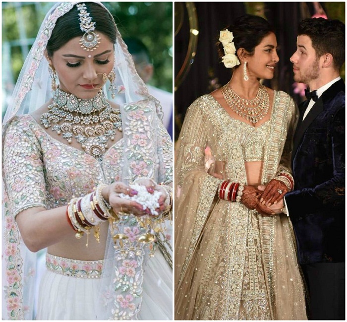 लाल, गुलाबी व पिंक जैसे फेस्टिव शेड्स दुल्हनों में काफी लोकप्रिय हैं। अब दुल्हनें पाऊडर ब्लू और पेल पिंक रंगों की ओर अधिक झुकाव दिखाने लगी हैं जो कुछ वर्ष पहले तक गैर-पांरपरिक माना जाता था। आज सफेद रंग को गोल्ड, सिल्वर तथा ब्रोंज के साथ मिश्रित करके विवाह पूर्व तथा बाद के फंक्शन पर पहनना काफी पसंद किया जा रहा है। सीजन लेस और ट्रेंड न्यूट्रल लोगों के बीच यह रंग काफी पॉपुलर हो चुका है तो इस बात पर किसी को कोई आश्चर्य नहीं होना चाहिए था कि प्रियंका चोपड़ा ने अपनी शादी की रिसेप्शन के लिए परंपरा को तोड़ते हुए व्हाइट कलर का फाल्गुनी एंड शेन पिकॉक ड्रेस पहना था।