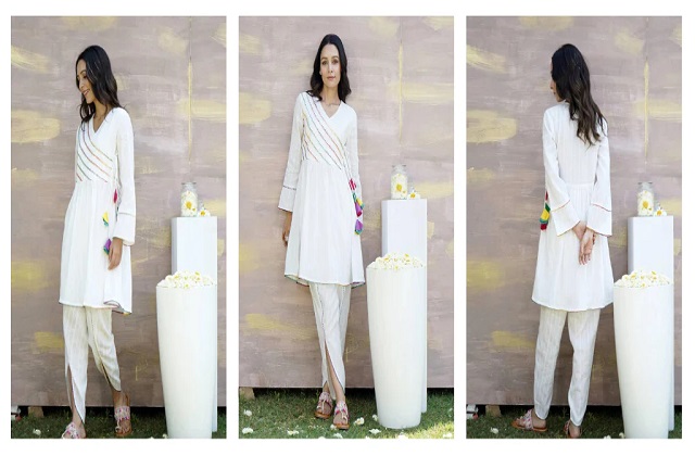 अंगरखा स्टाइल व्हाइट कॉटन ड्रेस होली पर ‘बॉस लेडी वाइब्स’ देती है।