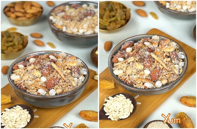 9. पंजीरी तैयार है। इसे तुरंत खा सकते हैं या